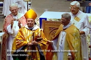 ..tahun 2003 Gereja Anglikan di New Hampshire mengangkat Gene Robinson, seorang homoseks, menjadi Uskup. Robinson dikenal sebagai pelaku homoseksual yang terang-terangan. Ia telah hidup bersama dengan pasangan homoseksnya bernama Mark Andrew selama 14 tahun...